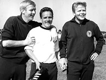 Karl-Heinz Schnellinger beginnt seine Karriere in Düren 99 und am 2. April 1958 spielt sein erstes Spiel in der Deutschen Nationalmannshaft in Prag gegen Tschechoslowakei nachdem er in verschiedenen Nationaljugendauswahlen gespielt hat.